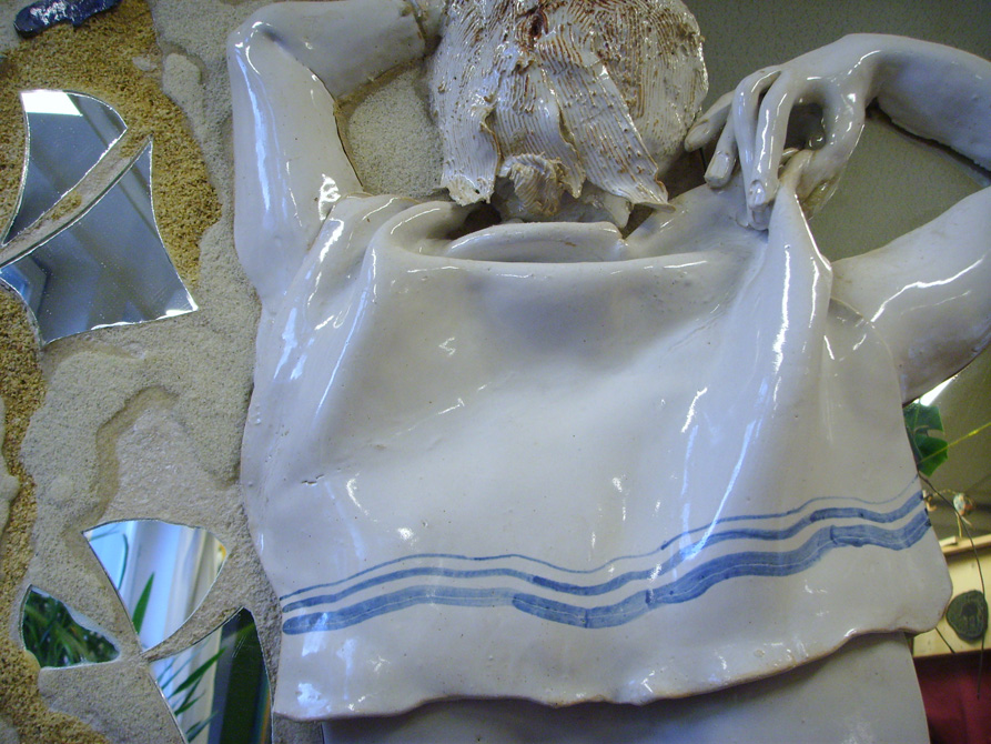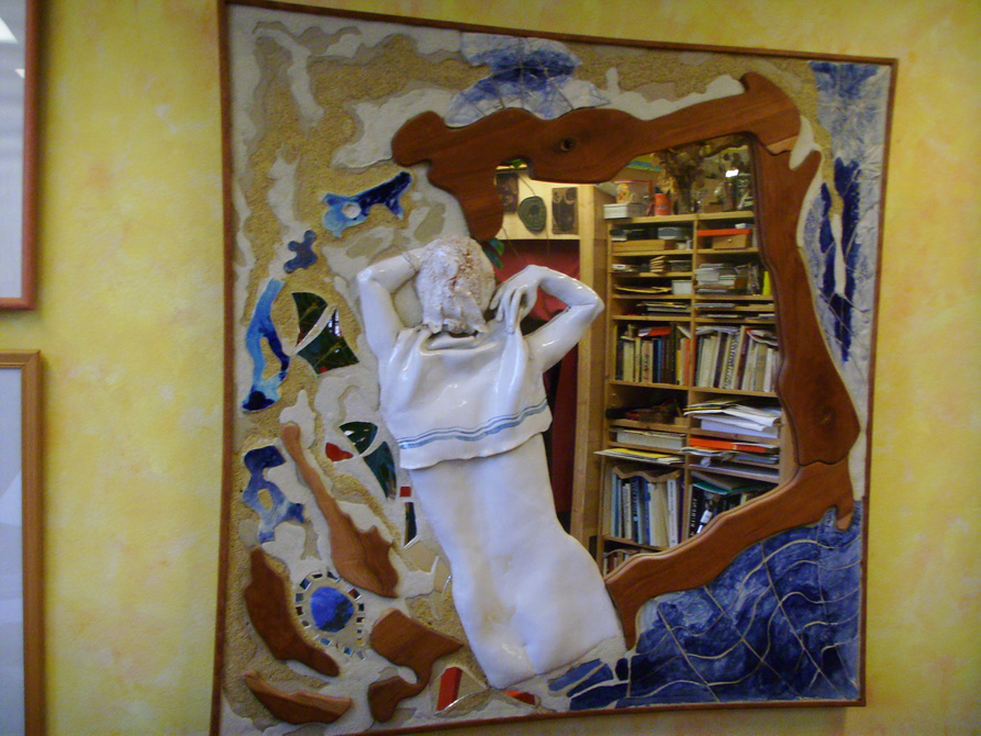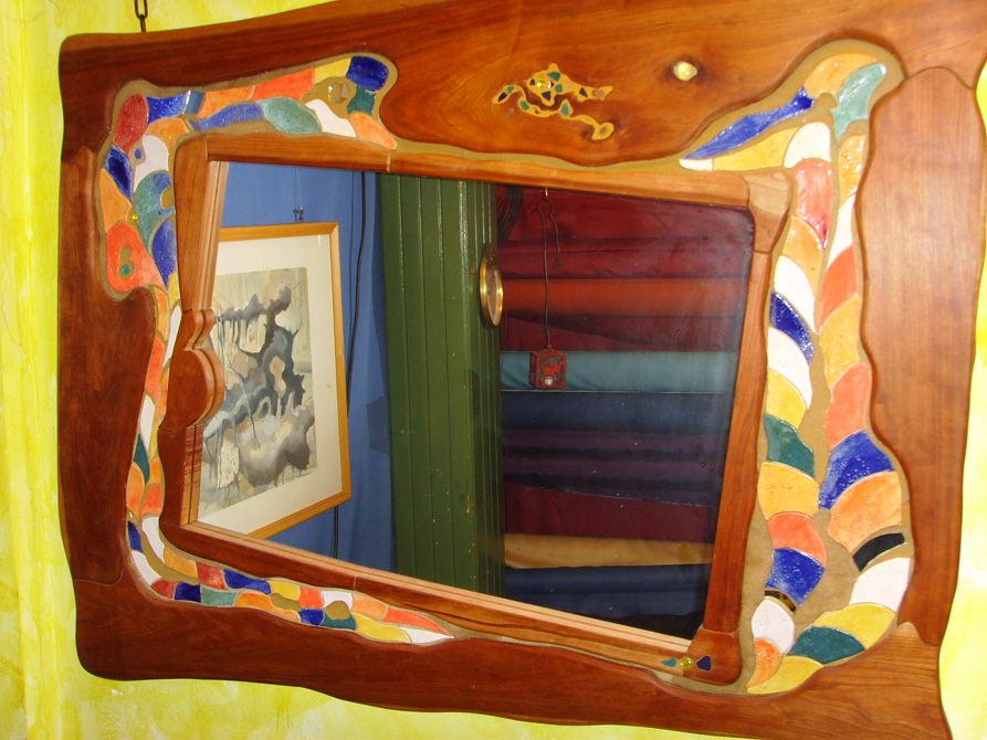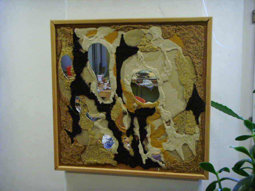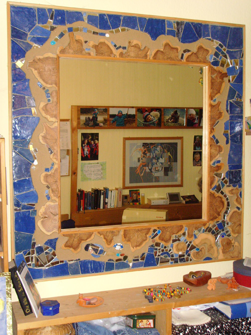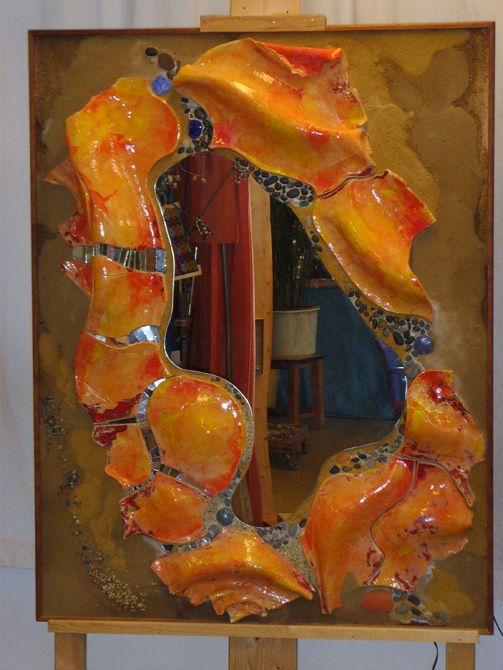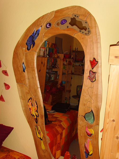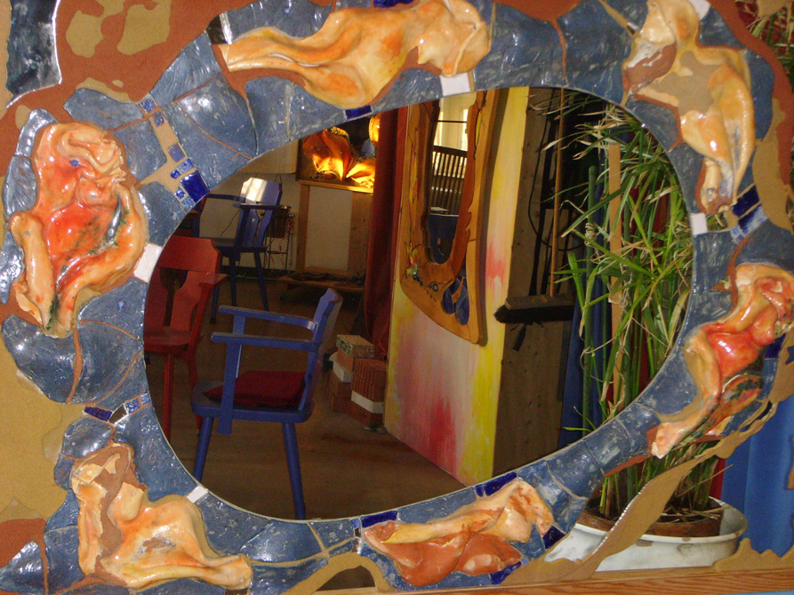 Neben der Anfertigung von Wohnraum- also Innenspiegeln können Sie ebenfalls ein Objekt in Auftrag geben, das seinen Platz außerhalb des Hauses erhalten soll. Ein Beispiel hierfür finden Sie abgebildet etwa unter "Das Atelier" bzw. im Impressum.
