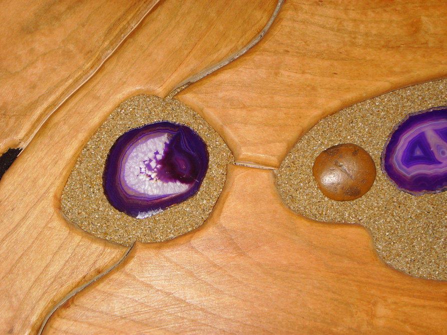 Zum Einsatz kommende Materialien sind Obsthölzer, Keramik, Steine, Metall, Sand, Achate, auf Wunsch Edelmetalle, Bernstein u. ä. . Die verwendeten Hölzer sind in der Regel geölt und gewachst.